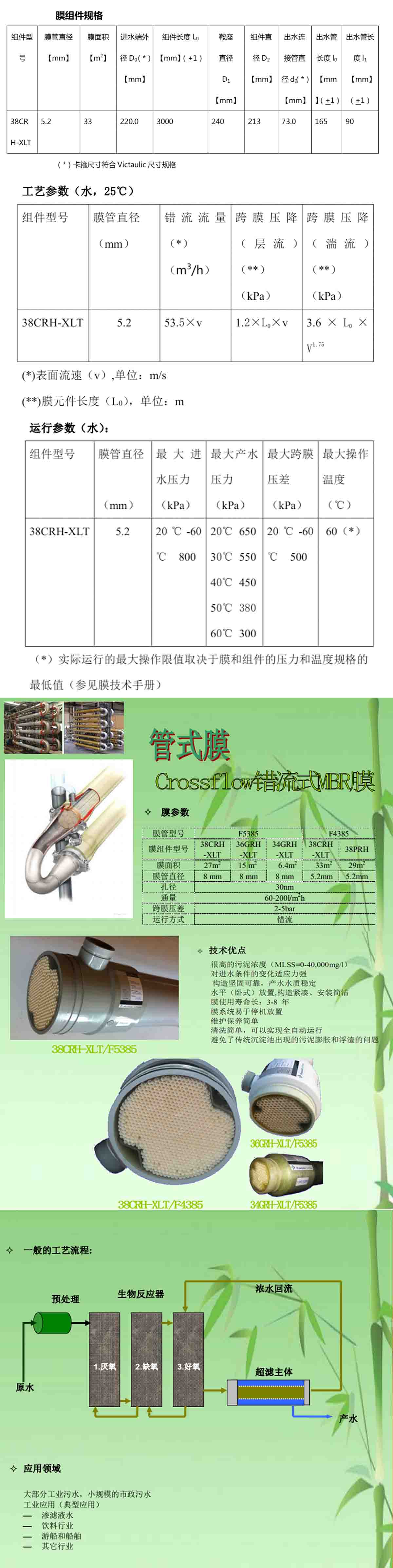滨特尔pentair X-Flow管式超滤膜38CRH F5385主要应用在: